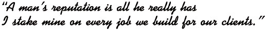 Feel free to call our customers for a first hand opinion of the quality of our service. I am confident you will find we have an excellent track record of " on time" completion in a " cost effective" manner.